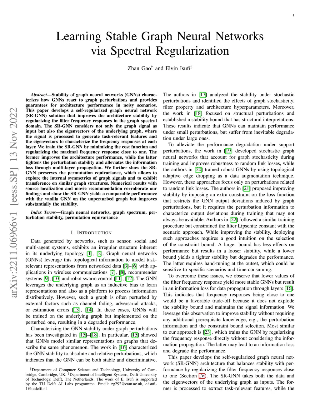 Learning Stable Graph Neural Networks via Spectral Regularization
