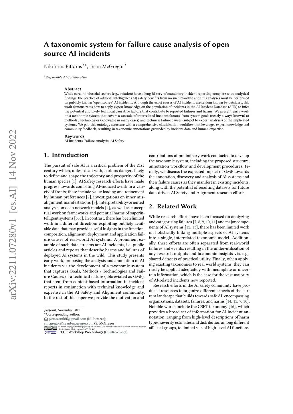 While certain industrial sectors (e.g., aviation) have a long history of mandatory incident reporting complete with analytical findings, the practice of artificial intelligence (AI) safety benefits from no such mandate and thus analyses must be performed on publicly known ``open source'' AI incidents. Although the exact causes of AI incidents are seldom known by outsiders, this work demonstrates how to apply expert knowledge on the population of incidents in the AI Incident Database (AIID) to infer the potential and likely technical causative factors that contribute to reported failures and harms. We present early work on a taxonomic system that covers a cascade of interrelated incident factors, from system goals (nearly always known) to methods / technologies (knowable in many cases) and technical failure causes (subject to expert analysis) of the implicated systems. We pair this ontology structure with a comprehensive classification workflow that leverages expert knowledge and community feedback, resulting in taxonomic annotations grounded by incident data and human expertise.