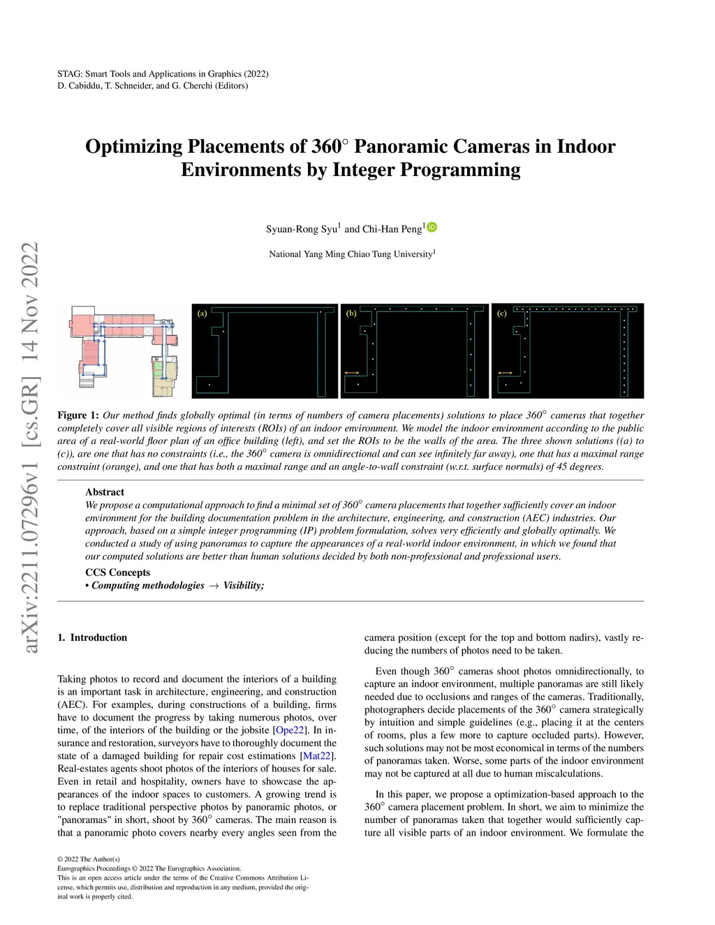Optimizing Placements of 360-degree Panoramic Cameras in Indoor