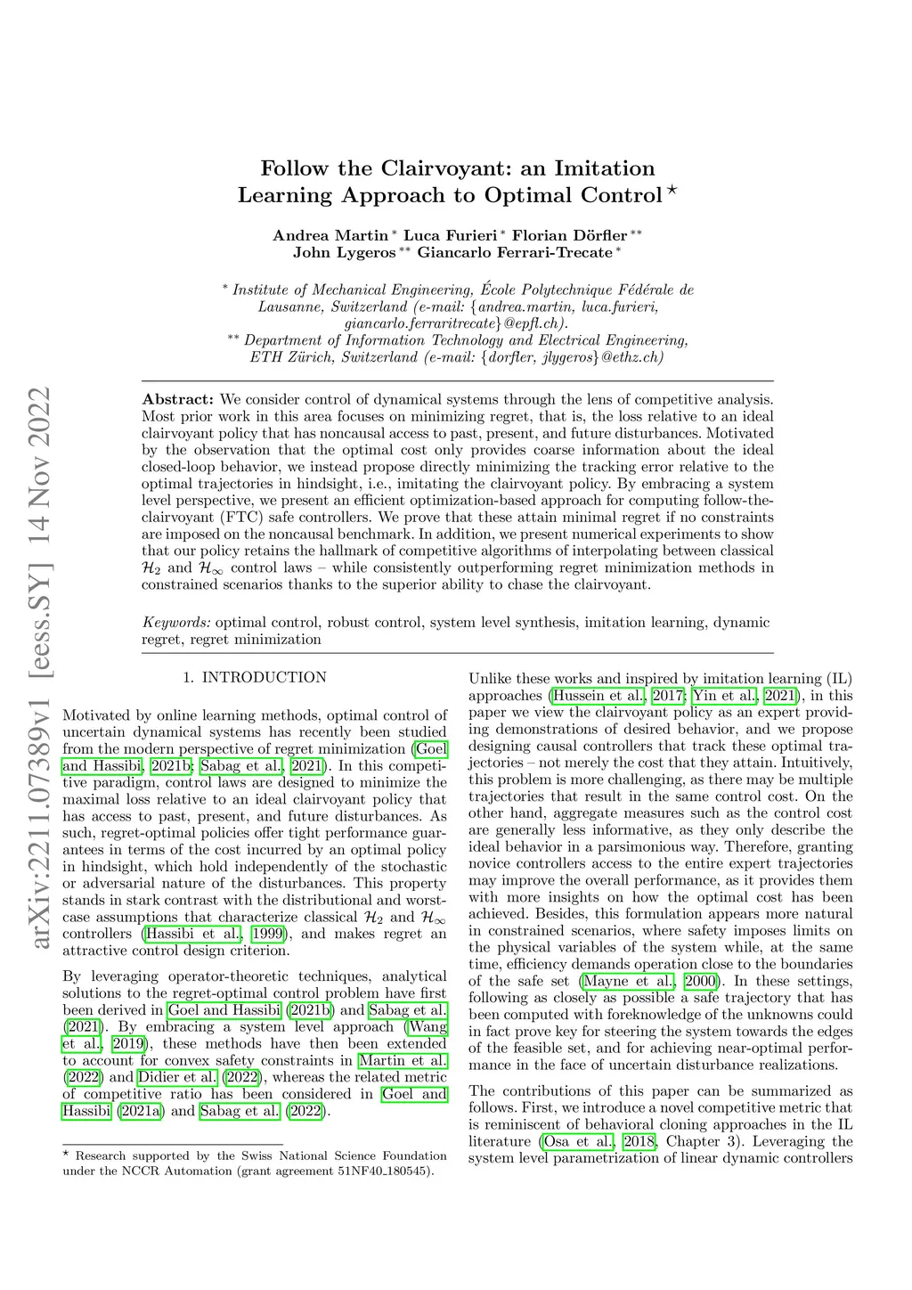 Follow the Clairvoyant: an Imitation Learning Approach to Optimal