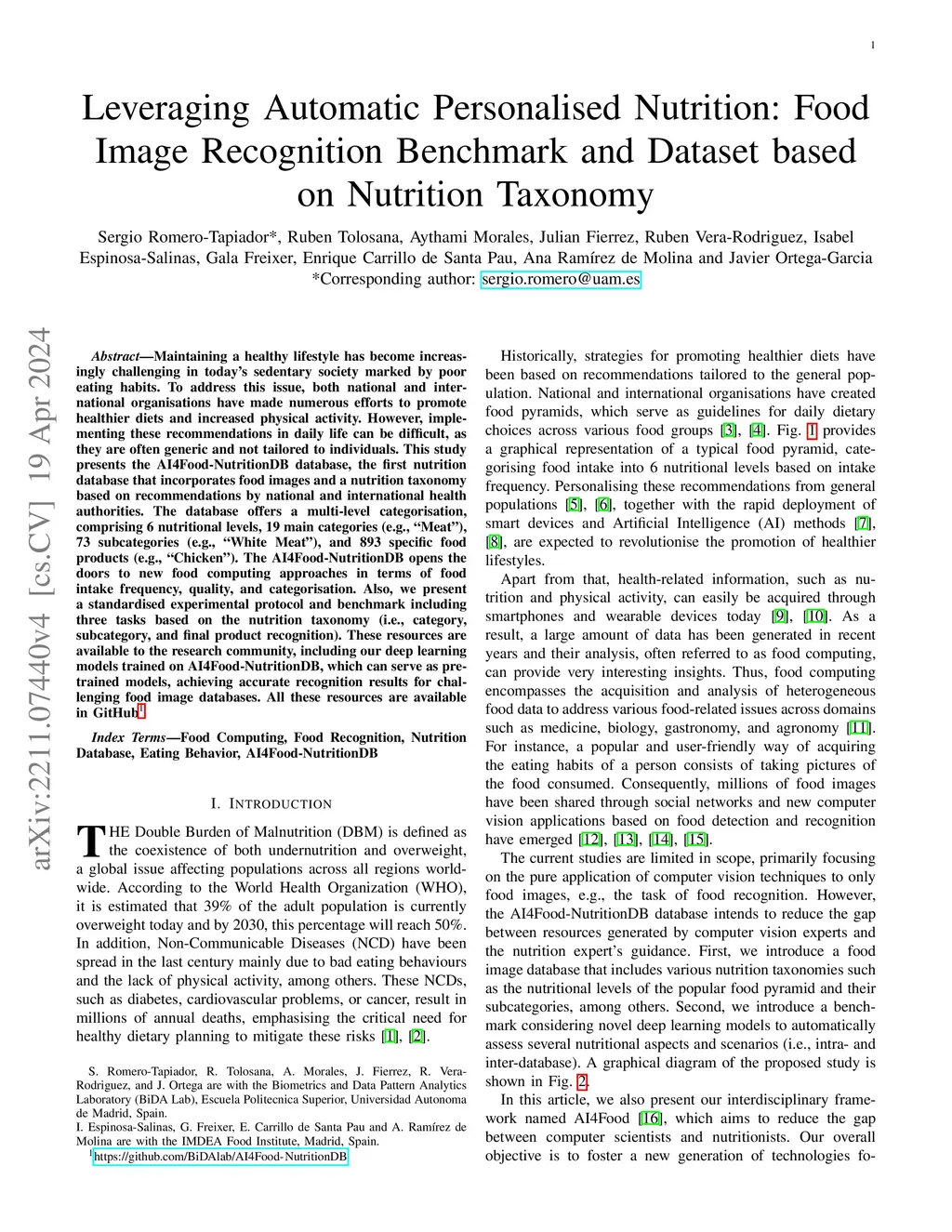 Leveraging Automatic Personalised Nutrition: Food Image Recognition