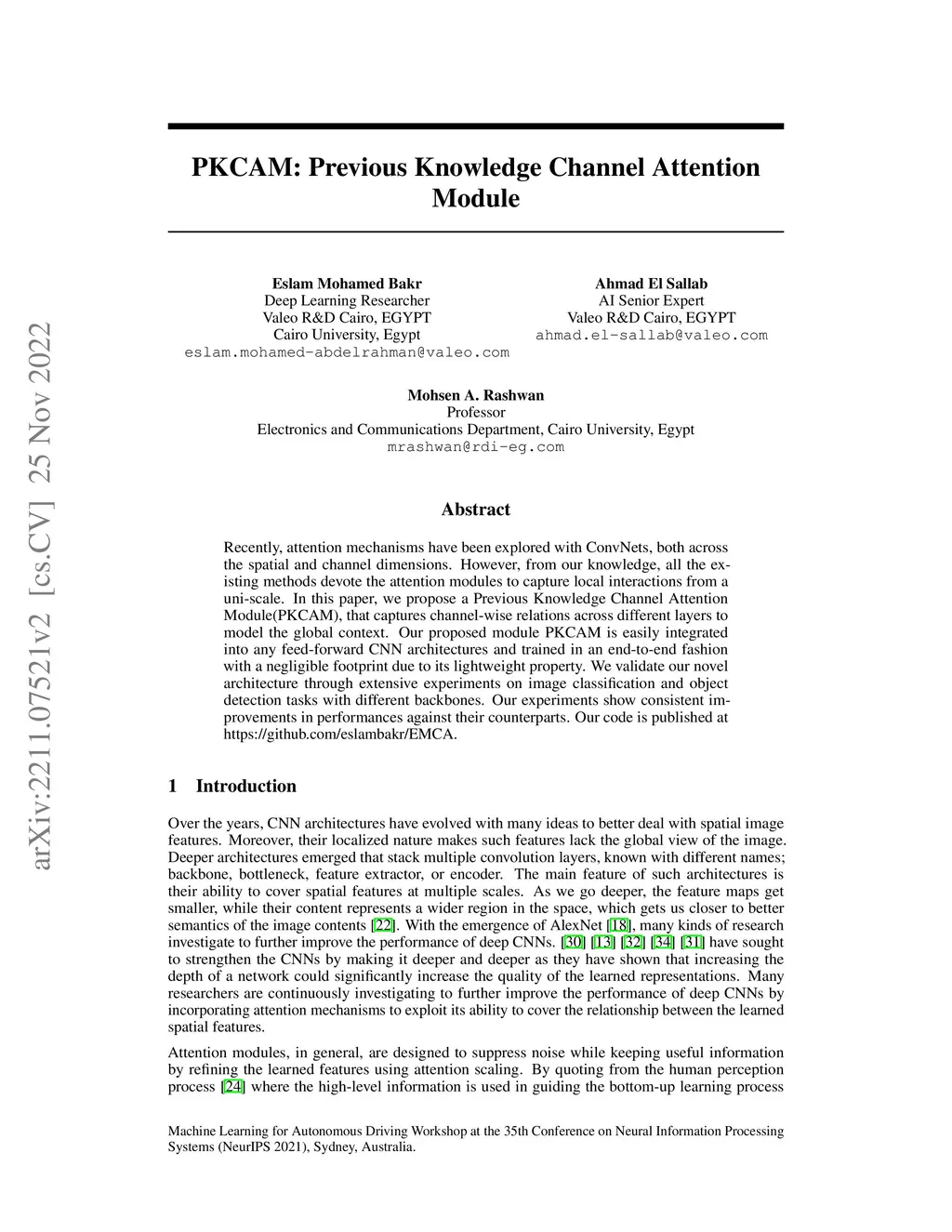 PKCAM: Previous Knowledge Channel Attention Module