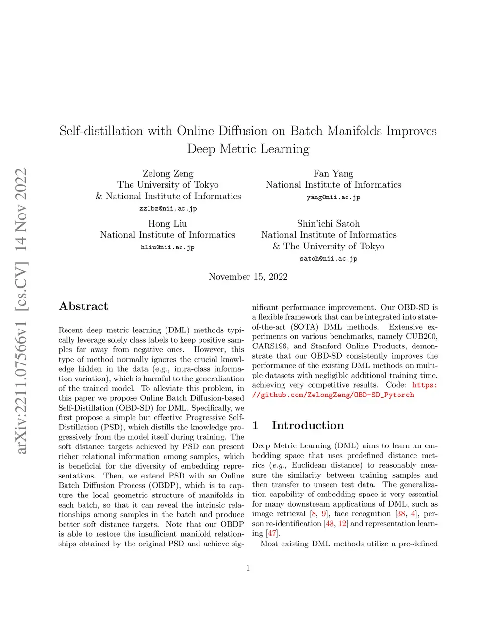 Self-distillation with Online Diffusion on Batch Manifolds Improves Deep