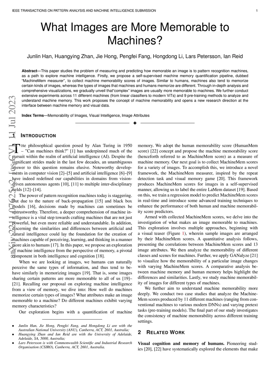 This paper studies the problem of measuring and predicting how memorable an image is to pattern recognition machines, as a path to explore machine intelligence. Firstly, we propose a self-supervised machine memory quantification pipeline, dubbed ``MachineMem measurer'', to collect machine memorability scores of images. Similar to humans, machines also tend to memorize certain kinds of images, whereas the types of images that machines and humans memorialize are different. Through in-depth analysis and comprehensive visualizations, we gradually unveil that "complex" images are usually more memorable to machines. We further conduct extensive experiments across 11 different machines (from linear classifiers to modern ViTs) and 9 pre-training methods to analyze and understand machine memory. This work proposes the concept of machine memorability and opens a new research direction at the interface between machine memory and visual data.