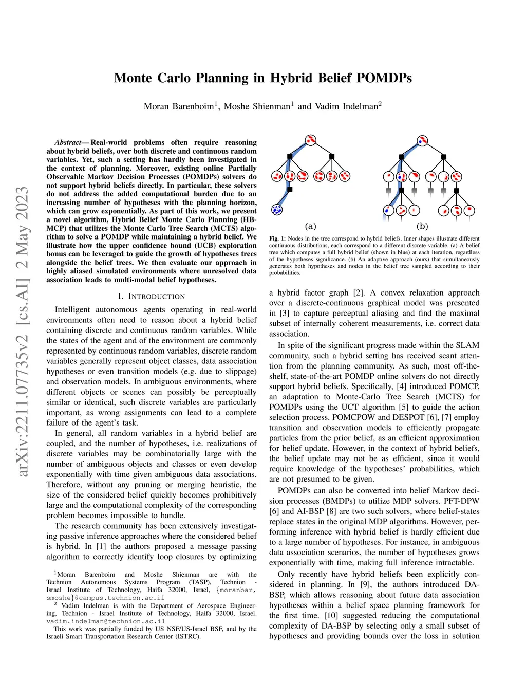 Real-world problems often require reasoning about hybrid beliefs, over both discrete and continuous random variables. Yet, such a setting has hardly been investigated in the context of planning. Moreover, existing online Partially Observable Markov Decision Processes (POMDPs) solvers do not support hybrid beliefs directly. In particular, these solvers do not address the added computational burden due to an increasing number of hypotheses with the planning horizon, which can grow exponentially. As part of this work, we present a novel algorithm, Hybrid Belief Monte Carlo Planning (HB-MCP) that utilizes the Monte Carlo Tree Search (MCTS) algorithm to solve a POMDP while maintaining a hybrid belief. We illustrate how the upper confidence bound (UCB) exploration bonus can be leveraged to guide the growth of hypotheses trees alongside the belief trees. We then evaluate our approach in highly aliased simulated environments where unresolved data association leads to multi-modal belief hypotheses.