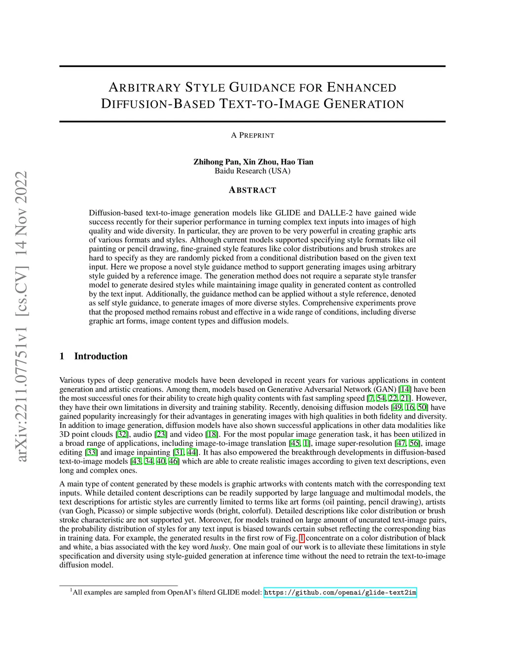 Arbitrary Style Guidance for Enhanced Diffusion-Based Text-to-Image