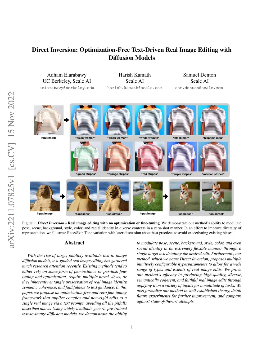 Direct Inversion: Optimization-Free Text-Driven Real Image Editing with