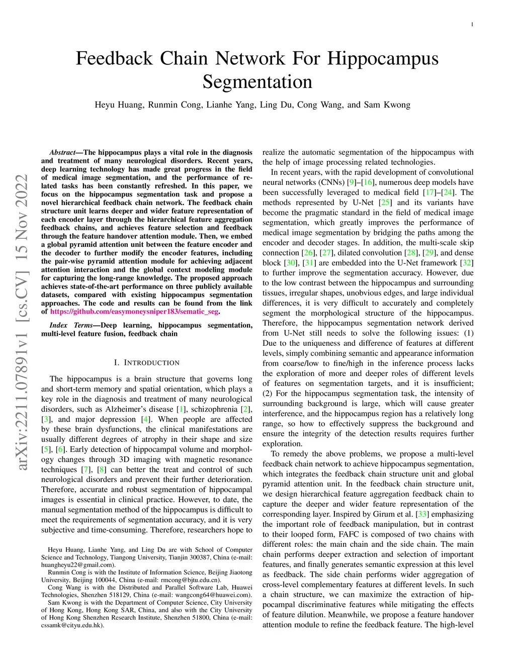 Feedback Chain Network For Hippocampus Segmentation