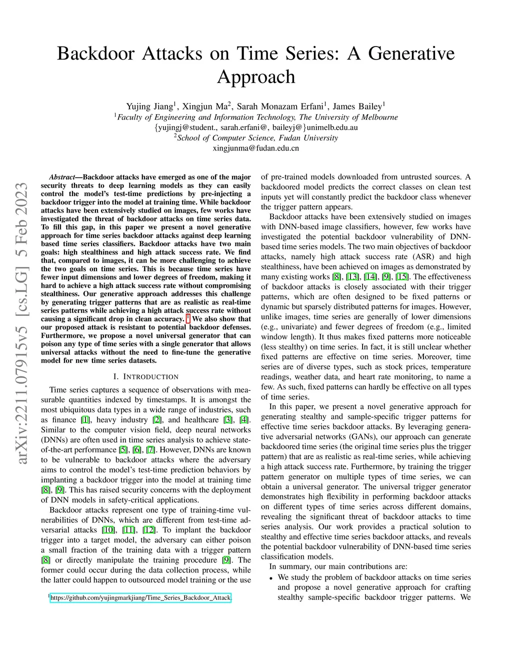 Backdoor attacks have emerged as one of the major security threats to deep learning models as they can easily control the model's test-time predictions by pre-injecting a backdoor trigger into the model at training time. While backdoor attacks have been extensively studied on images, few works have investigated the threat of backdoor attacks on time series data. To fill this gap, in this paper we present a novel generative approach for time series backdoor attacks against deep learning based time series classifiers. Backdoor attacks have two main goals: high stealthiness and high attack success rate. We find that, compared to images, it can be more challenging to achieve the two goals on time series. This is because time series have fewer input dimensions and lower degrees of freedom, making it hard to achieve a high attack success rate without compromising stealthiness. Our generative approach addresses this challenge by generating trigger patterns that are as realistic as real-time series patterns while achieving a high attack success rate without causing a significant drop in clean accuracy. We also show that our proposed attack is resistant to potential backdoor defenses. Furthermore, we propose a novel universal generator that can poison any type of time series with a single generator that allows universal attacks without the need to fine-tune the generative model for new time series datasets.