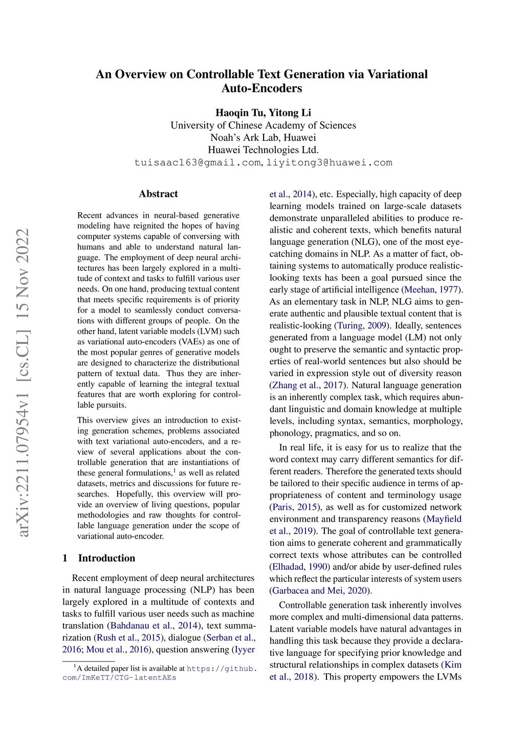 An Overview on Controllable Text Generation via Variational