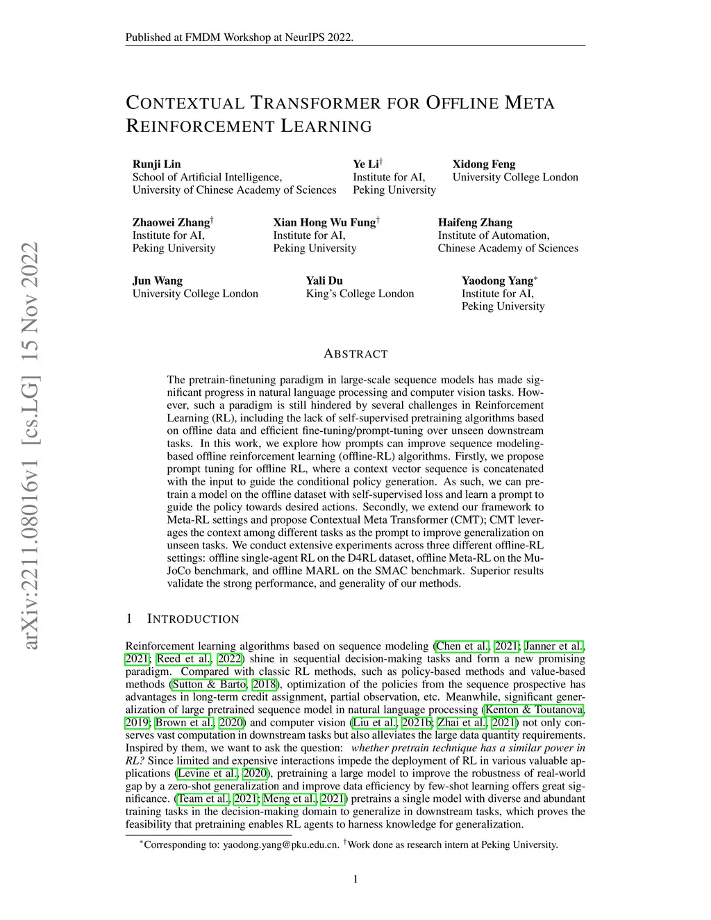 Contextual Transformer for Offline Meta Reinforcement Learning