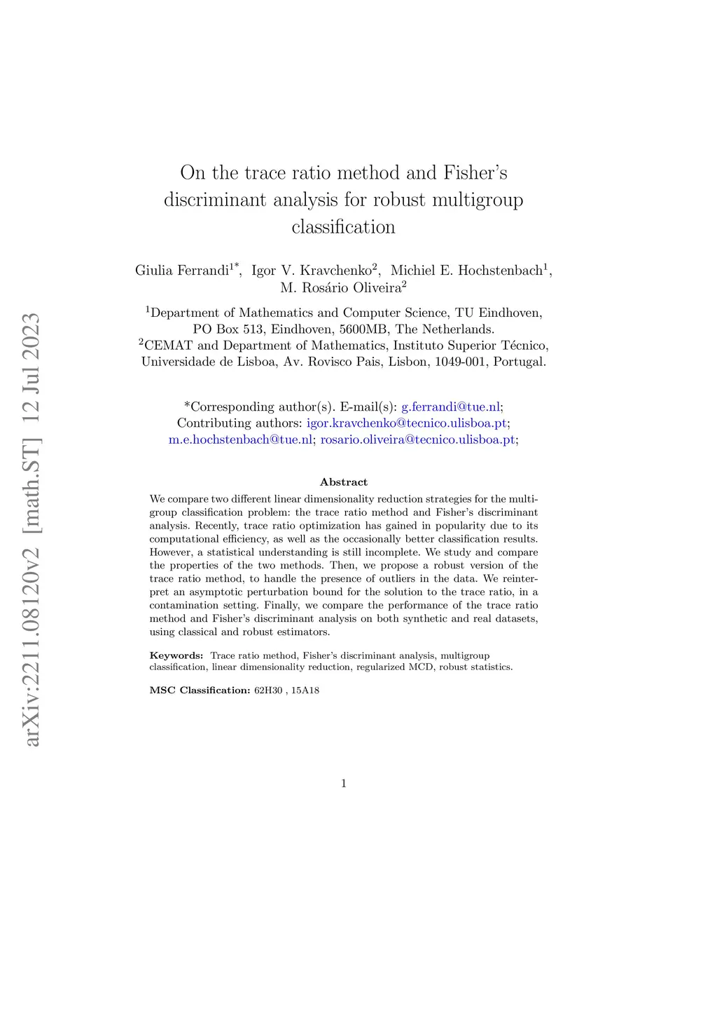 On the trace ratio method and Fisher's discriminant analysis for robust