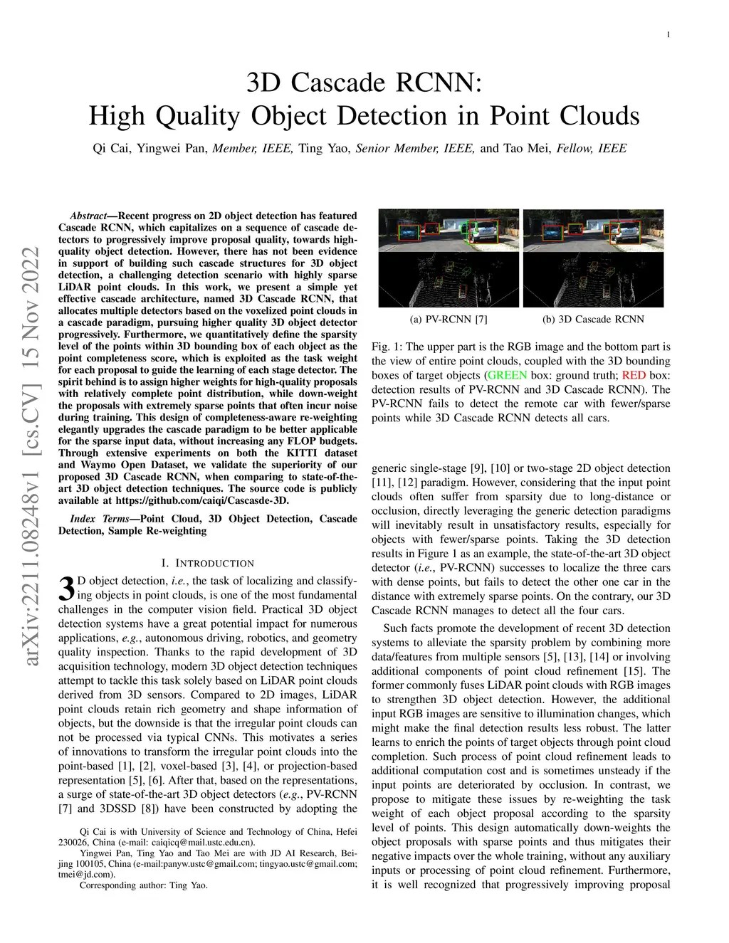 3D Cascade RCNN: High Quality Object Detection in Point Clouds