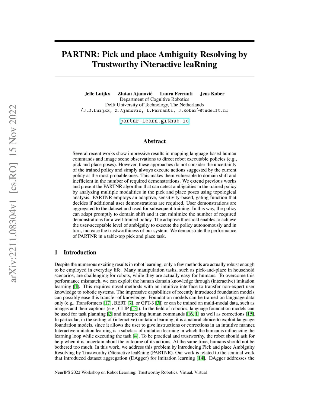 PARTNR: Pick and place Ambiguity Resolving by Trustworthy iNteractive