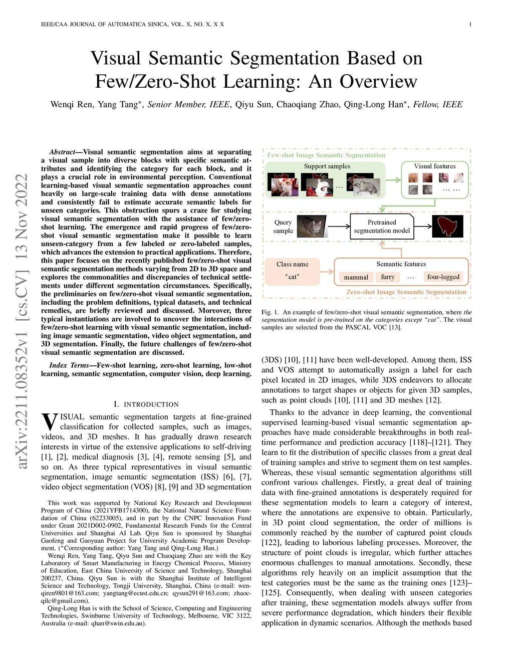 Visual Semantic Segmentation Based on Few/Zero-Shot Learning: An