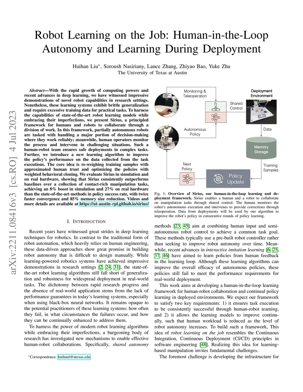 Robot Learning on the Job: Human-in-the-Loop Autonomy and Learning