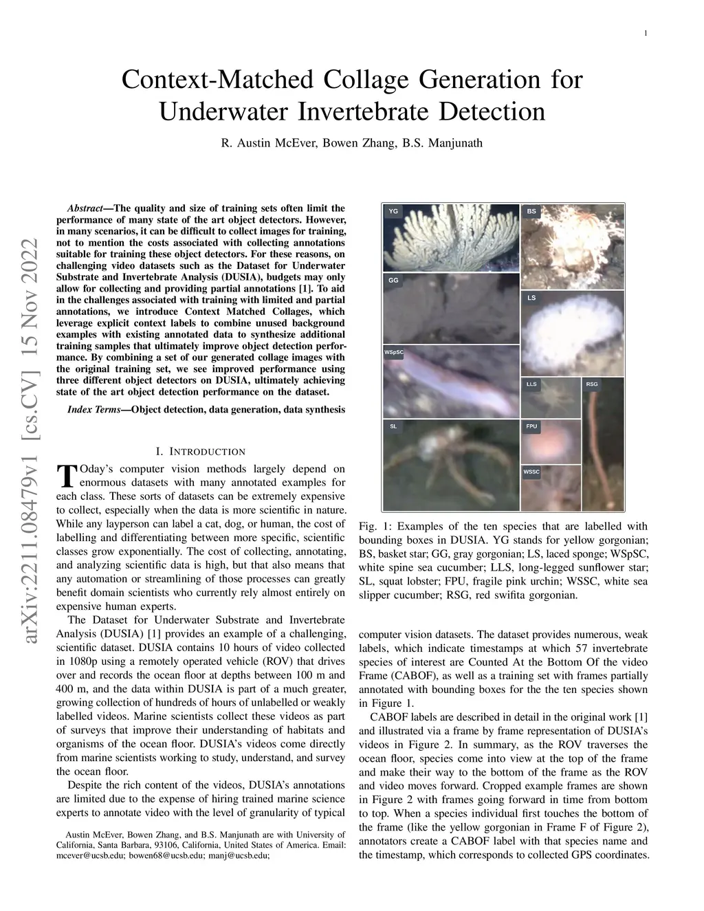Context-Matched Collage Generation for Underwater Invertebrate Detection