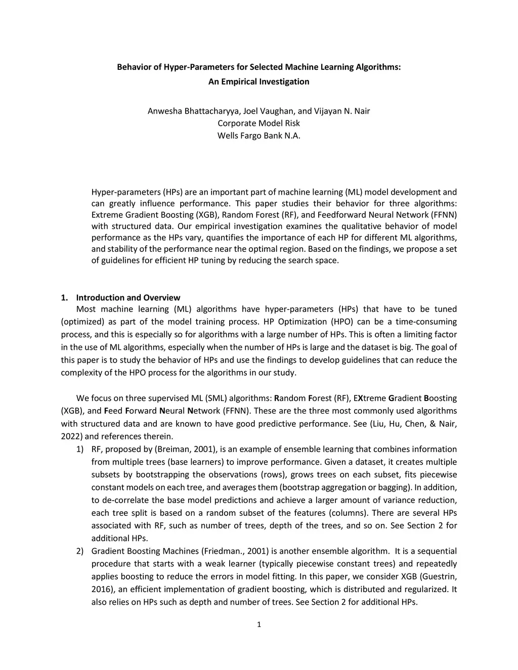 Behavior of Hyper-Parameters for Selected Machine Learning Algorithms: