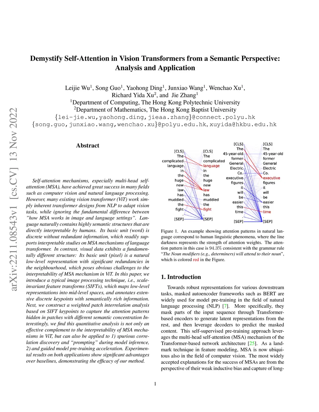 Self-attention mechanisms, especially multi-head self-attention (MSA), have achieved great success in many fields such as computer vision and natural language processing. However, many existing vision transformer (ViT) works simply inherent transformer designs from NLP to adapt vision tasks, while ignoring the fundamental difference between ``how MSA works in image and language settings''. Language naturally contains highly semantic structures that are directly interpretable by humans. Its basic unit (word) is discrete without redundant information, which readily supports interpretable studies on MSA mechanisms of language transformer. In contrast, visual data exhibits a fundamentally different structure: Its basic unit (pixel) is a natural low-level representation with significant redundancies in the neighbourhood, which poses obvious challenges to the interpretability of MSA mechanism in ViT. In this paper, we introduce a typical image processing technique, i.e., scale-invariant feature transforms (SIFTs), which maps low-level representations into mid-level spaces, and annotates extensive discrete keypoints with semantically rich information. Next, we construct a weighted patch interrelation analysis based on SIFT keypoints to capture the attention patterns hidden in patches with different semantic concentrations Interestingly, we find this quantitative analysis is not only an effective complement to the interpretability of MSA mechanisms in ViT, but can also be applied to 1) spurious correlation discovery and ``prompting'' during model inference, 2) and guided model pre-training acceleration. Experimental results on both applications show significant advantages over baselines, demonstrating the efficacy of our method.