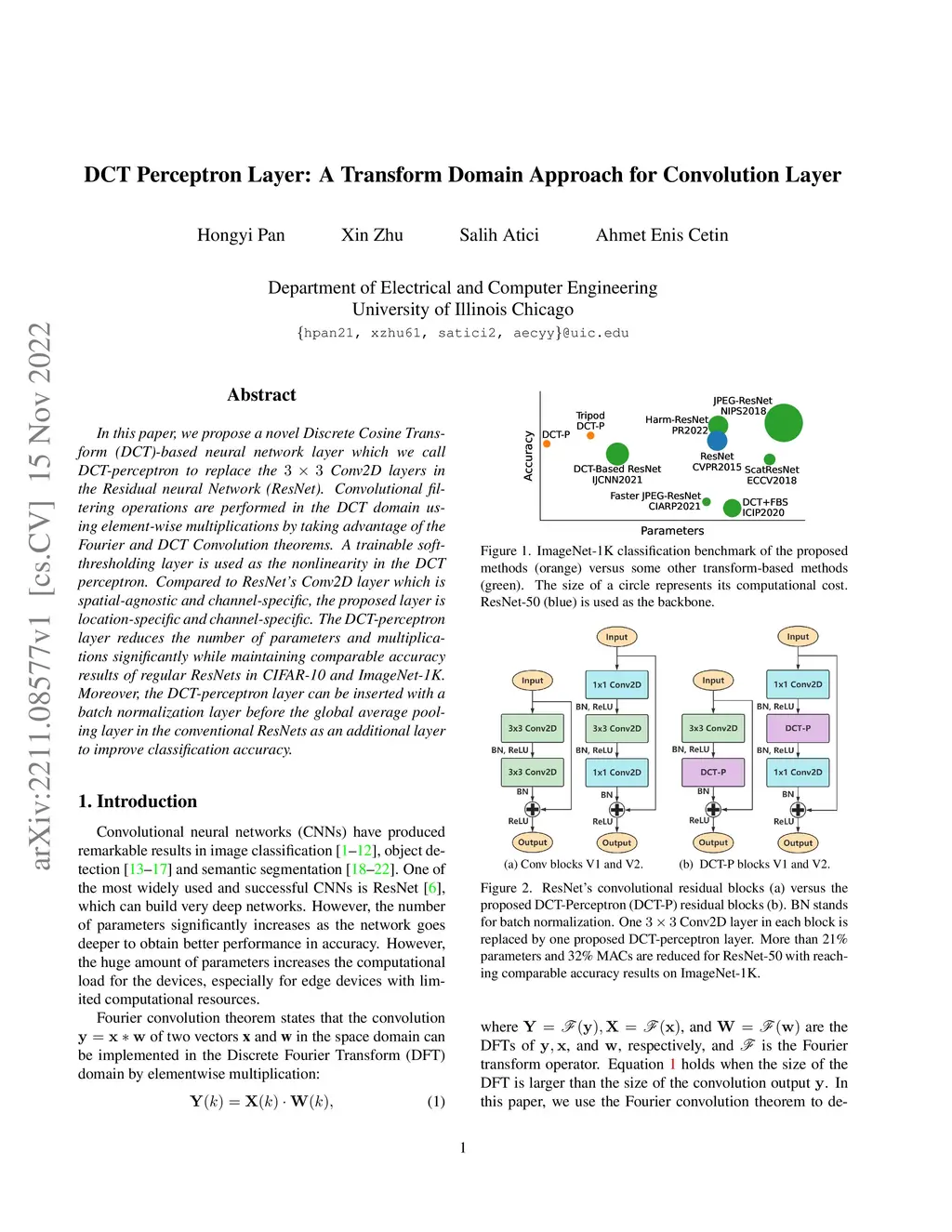 DCT Perceptron Layer: A Transform Domain Approach for Convolution Layer