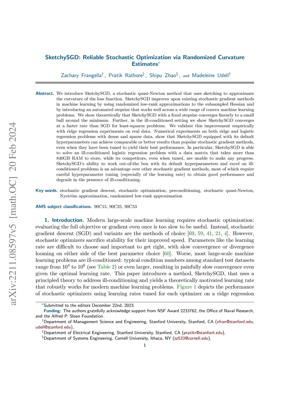 SketchySGD: Reliable Stochastic Optimization via Randomized Curvature