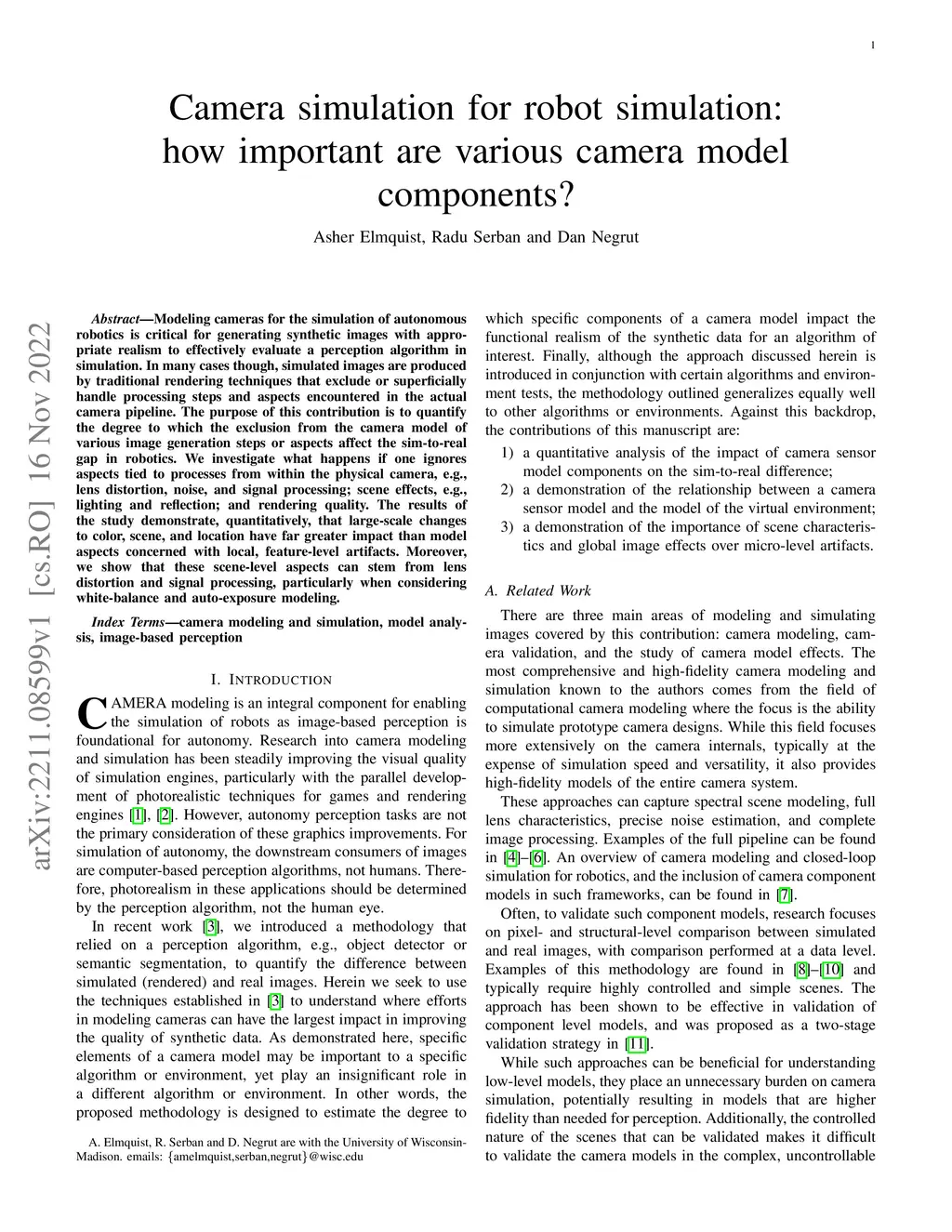 Modeling cameras for the simulation of autonomous robotics is critical for generating synthetic images with appropriate realism to effectively evaluate a perception algorithm in simulation. In many cases though, simulated images are produced by traditional rendering techniques that exclude or superficially handle processing steps and aspects encountered in the actual camera pipeline. The purpose of this contribution is to quantify the degree to which the exclusion from the camera model of various image generation steps or aspects affect the sim-to-real gap in robotics. We investigate what happens if one ignores aspects tied to processes from within the physical camera, e.g., lens distortion, noise, and signal processing; scene effects, e.g., lighting and reflection; and rendering quality. The results of the study demonstrate, quantitatively, that large-scale changes to color, scene, and location have far greater impact than model aspects concerned with local, feature-level artifacts. Moreover, we show that these scene-level aspects can stem from lens distortion and signal processing, particularly when considering white-balance and auto-exposure modeling.