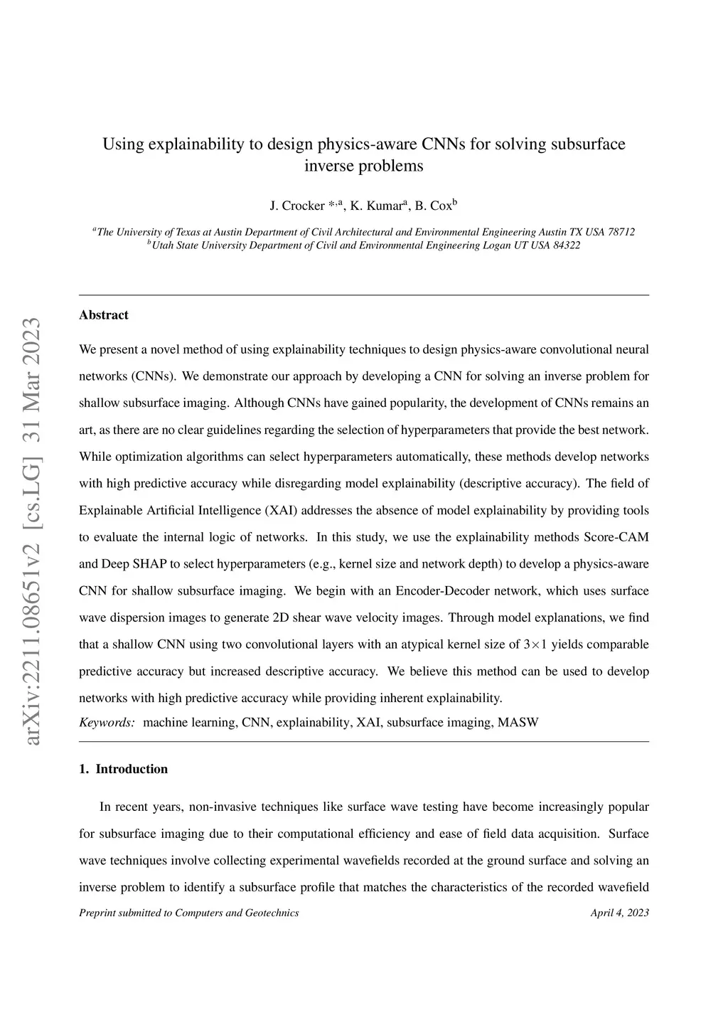 We present a novel method of using explainability techniques to design physics-aware neural networks. We demonstrate our approach by developing a convolutional neural network (CNN) for solving an inverse problem for shallow subsurface imaging. Although CNNs have gained popularity in recent years across many fields, the development of CNNs remains an art, as there are no clear guidelines regarding the selection of hyperparameters that will yield the best network. While optimization algorithms may be used to select hyperparameters automatically, these methods focus on developing networks with high predictive accuracy while disregarding model explainability (descriptive accuracy). However, the field of Explainable Artificial Intelligence (XAI) addresses the absence of model explainability by providing tools that allow developers to evaluate the internal logic of neural networks. In this study, we use the explainability methods Score-CAM and Deep SHAP to select hyperparameters, such as kernel sizes and network depth, to develop a physics-aware CNN for shallow subsurface imaging. We begin with a relatively deep Encoder-Decoder network, which uses surface wave dispersion images as inputs and generates 2D shear wave velocity subsurface images as outputs. Through model explanations, we ultimately find that a shallow CNN using two convolutional layers with an atypical kernel size of 3x1 yields comparable predictive accuracy but with increased descriptive accuracy. We also show that explainability methods can be used to evaluate the network's complexity and decision-making. We believe this method can be used to develop neural networks with high predictive accuracy while also providing inherent explainability.
