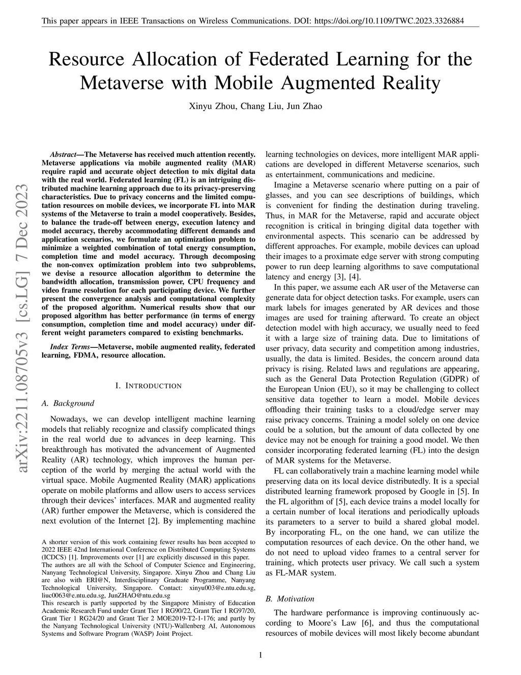 Resource Allocation of Federated Learning for the Metaverse with Mobile