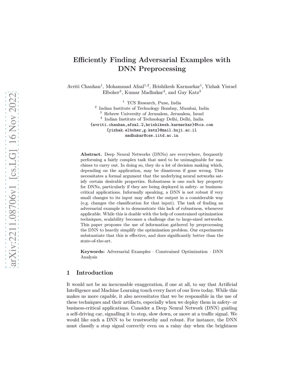 Deep Neural Networks (DNNs) are everywhere, frequently performing a fairly complex task that used to be unimaginable for machines to carry out. In doing so, they do a lot of decision making which, depending on the application, may be disastrous if gone wrong. This necessitates a formal argument that the underlying neural networks satisfy certain desirable properties. Robustness is one such key property for DNNs, particularly if they are being deployed in safety or business critical applications. Informally speaking, a DNN is not robust if very small changes to its input may affect the output in a considerable way (e.g. changes the classification for that input). The task of finding an adversarial example is to demonstrate this lack of robustness, whenever applicable. While this is doable with the help of constrained optimization techniques, scalability becomes a challenge due to large-sized networks. This paper proposes the use of information gathered by preprocessing the DNN to heavily simplify the optimization problem. Our experiments substantiate that this is effective, and does significantly better than the state-of-the-art.