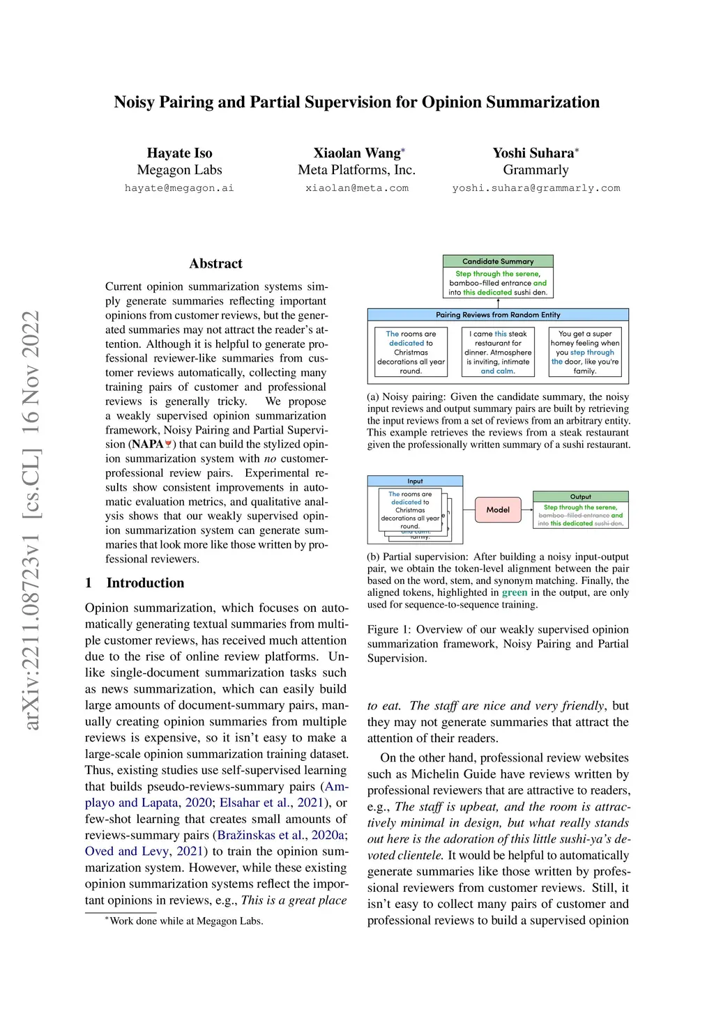 Noisy Pairing and Partial Supervision for Opinion Summarization