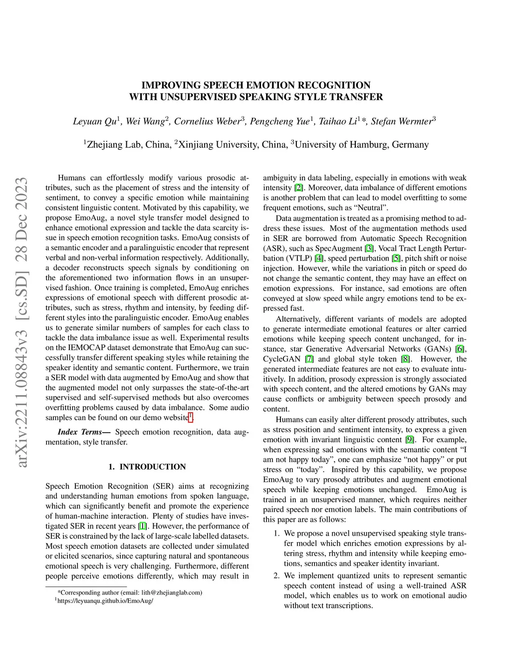 Improving Speech Emotion Recognition with Unsupervised Speaking Style