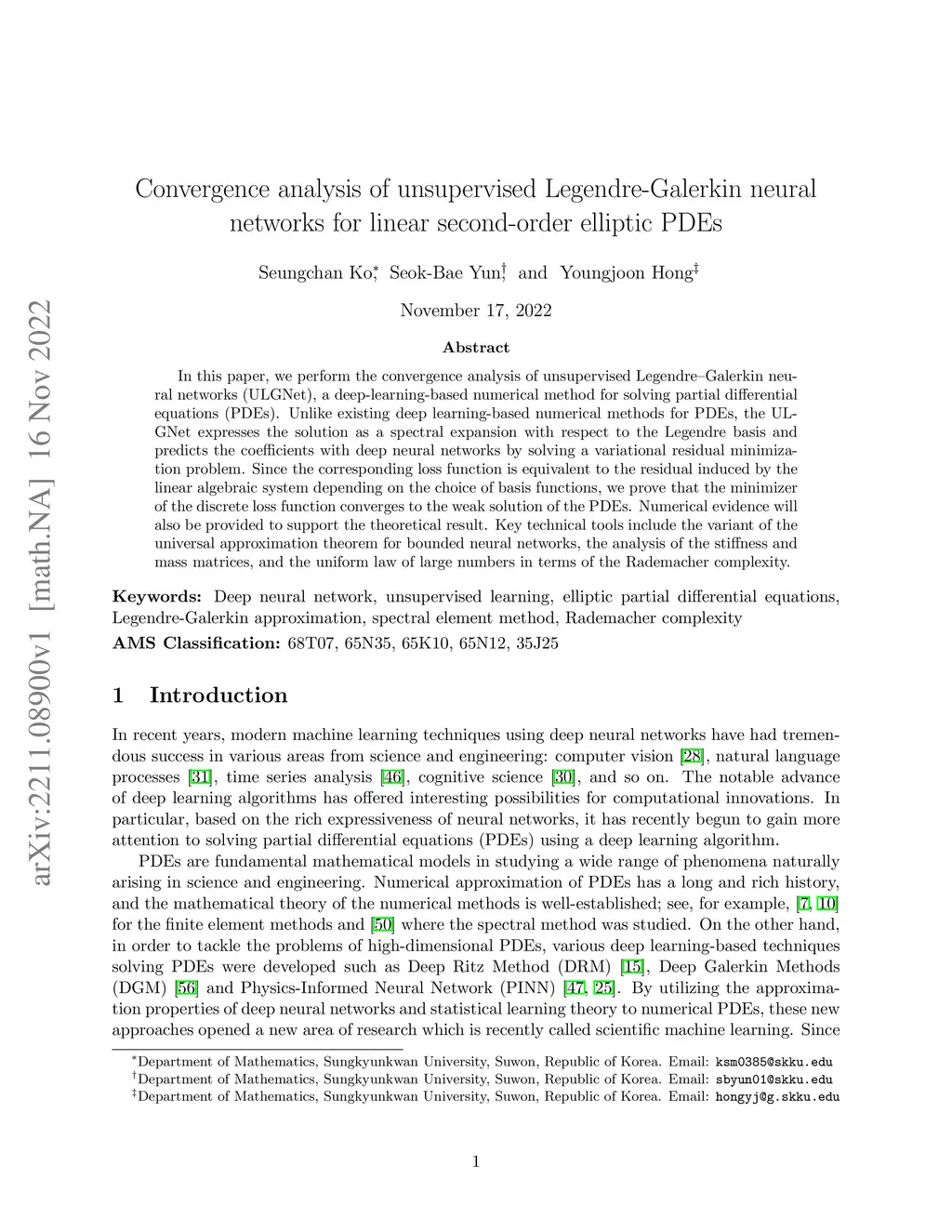 Convergence analysis of unsupervised Legendre-Galerkin neural networks