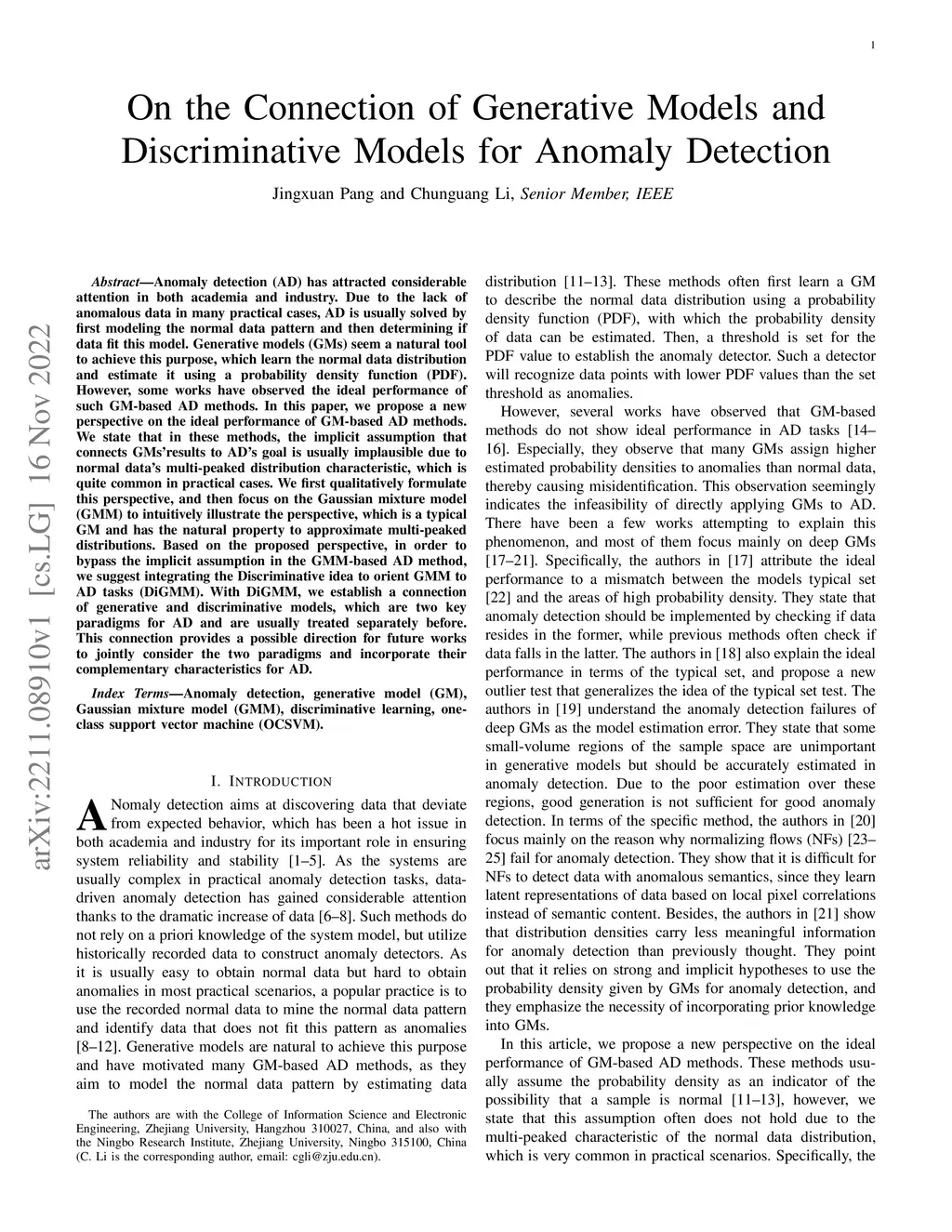 Anomaly detection (AD) has attracted considerable attention in both academia and industry. Due to the lack of anomalous data in many practical cases, AD is usually solved by first modeling the normal data pattern and then determining if data fit this model. Generative models (GMs) seem a natural tool to achieve this purpose, which learn the normal data distribution and estimate it using a probability density function (PDF). However, some works have observed the ideal performance of such GM-based AD methods. In this paper, we propose a new perspective on the ideal performance of GM-based AD methods. We state that in these methods, the implicit assumption that connects GMs'results to AD's goal is usually implausible due to normal data's multi-peaked distribution characteristic, which is quite common in practical cases. We first qualitatively formulate this perspective, and then focus on the Gaussian mixture model (GMM) to intuitively illustrate the perspective, which is a typical GM and has the natural property to approximate multi-peaked distributions. Based on the proposed perspective, in order to bypass the implicit assumption in the GMM-based AD method, we suggest integrating the Discriminative idea to orient GMM to AD tasks (DiGMM). With DiGMM, we establish a connection of generative and discriminative models, which are two key paradigms for AD and are usually treated separately before. This connection provides a possible direction for future works to jointly consider the two paradigms and incorporate their complementary characteristics for AD.