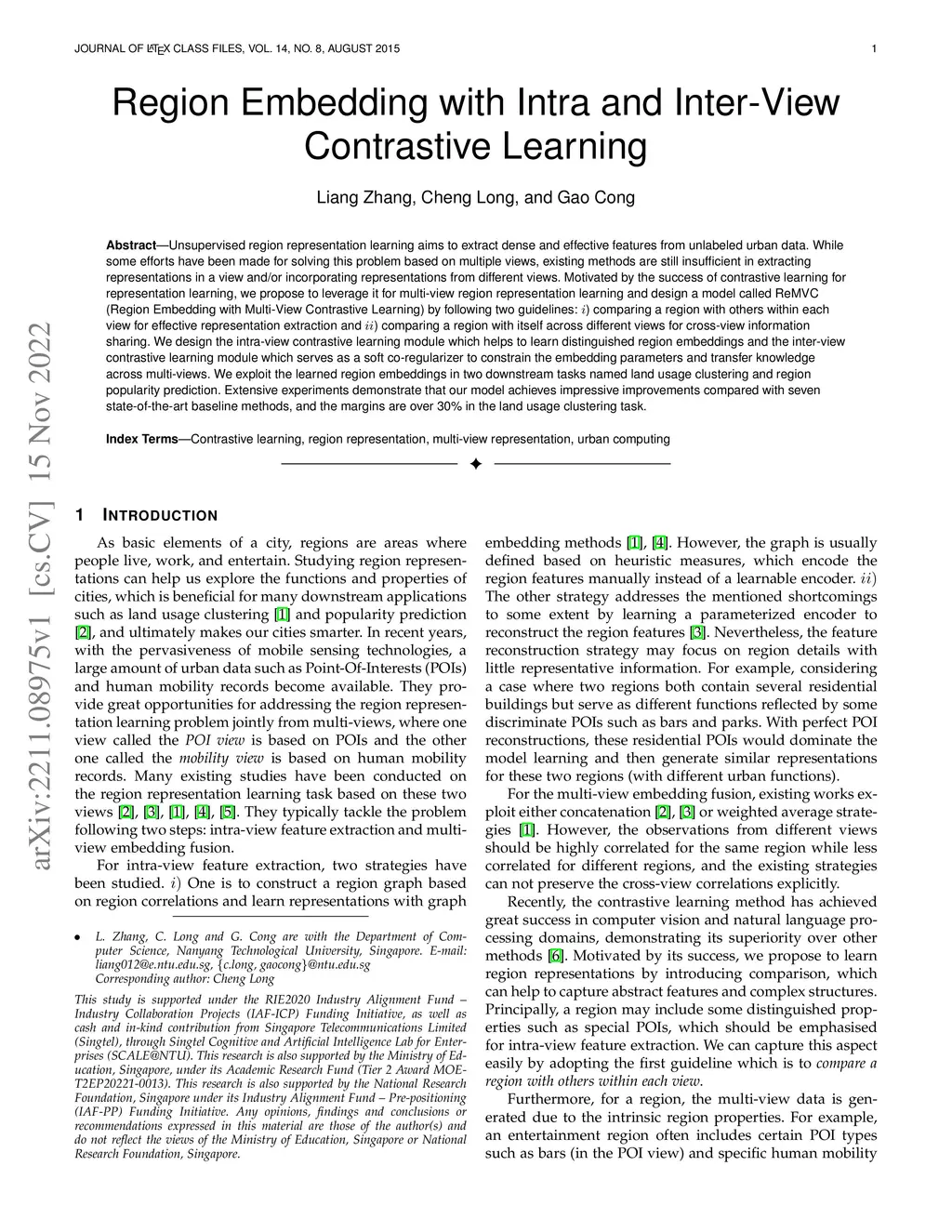 Region Embedding with Intra and Inter-View Contrastive Learning
