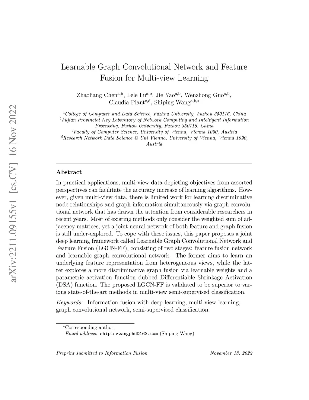 Learnable Graph Convolutional Network and Feature Fusion for Multi-view