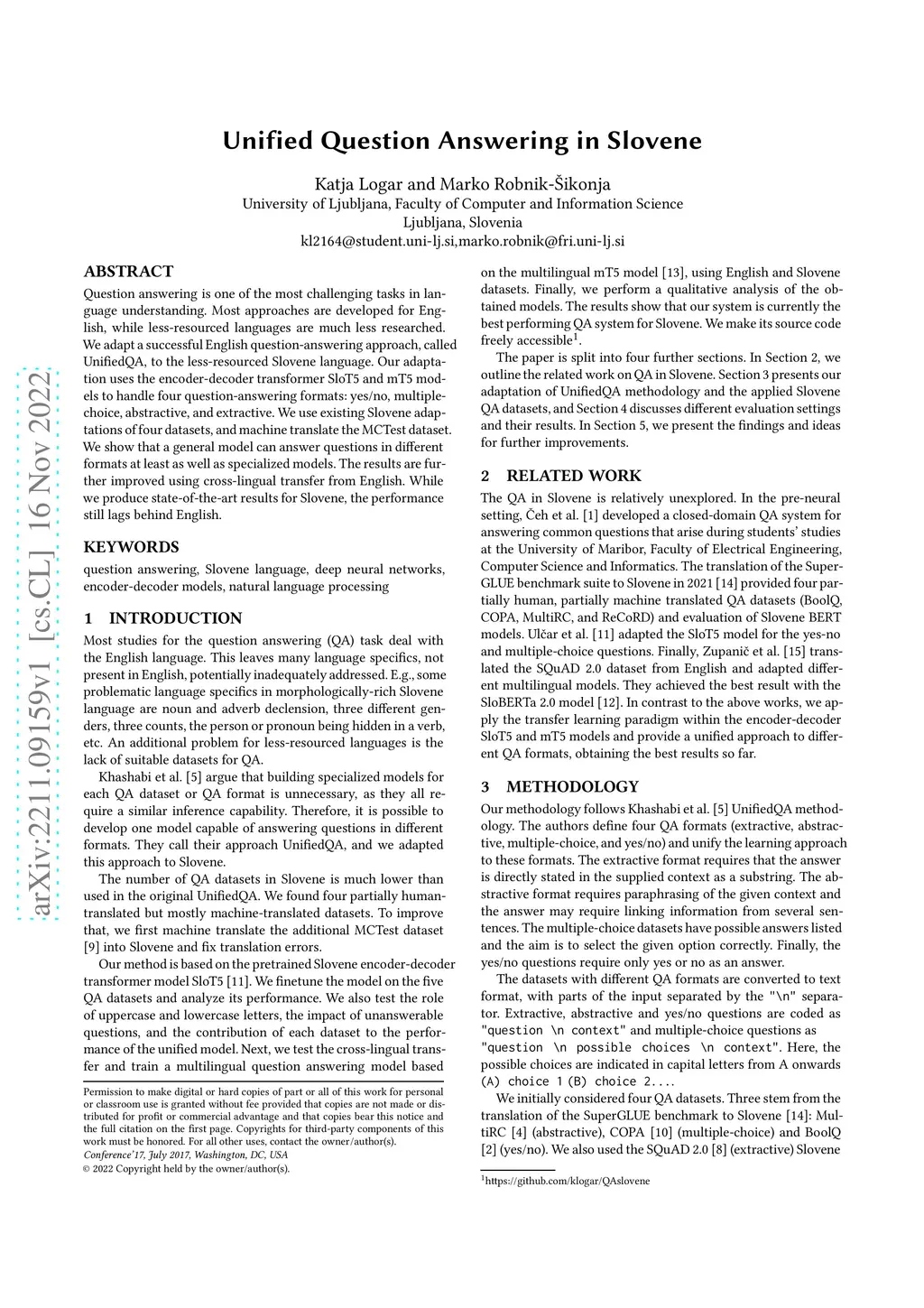 Unified Question Answering in Slovene
