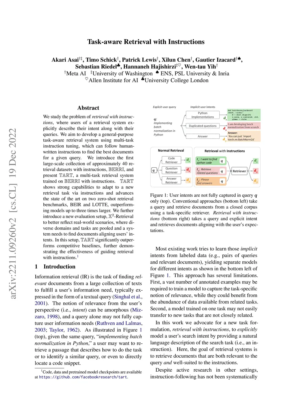 We study the problem of retrieval with instructions, where users of a retrieval system explicitly describe their intent along with their queries. We aim to develop a general-purpose task-aware retrieval system using multi-task instruction tuning, which can follow human-written instructions to find the best documents for a given query. We introduce the first large-scale collection of approximately 40 retrieval datasets with instructions, BERRI, and present TART, a multi-task retrieval system trained on BERRI with instructions. TART shows strong capabilities to adapt to a new retrieval task via instructions and advances the state of the art on two zero-shot retrieval benchmarks, BEIR and LOTTE, outperforming models up to three times larger. We further introduce a new evaluation setup, X^2-Retrieval to better reflect real-world scenarios, where diverse domains and tasks are pooled and a system needs to find documents aligning users' intents. In this setup, TART significantly outperforms competitive baselines, further demonstrating the effectiveness of guiding retrieval with instructions.