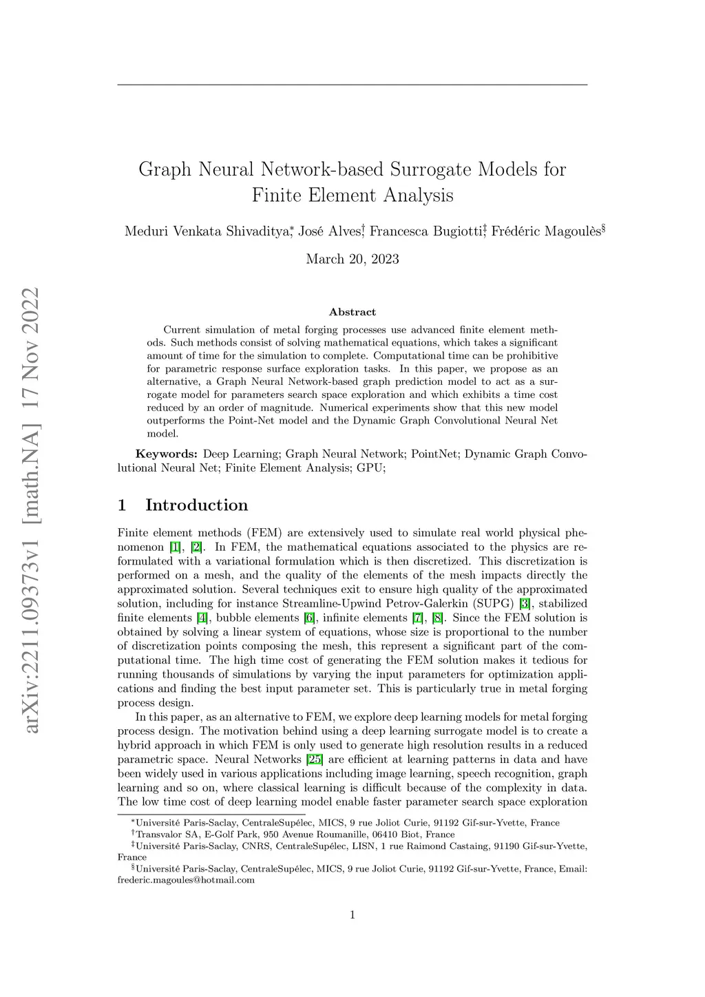 Current simulation of metal forging processes use advanced finite element methods. Such methods consist of solving mathematical equations, which takes a significant amount of time for the simulation to complete. Computational time can be prohibitive for parametric response surface exploration tasks. In this paper, we propose as an alternative, a Graph Neural Network-based graph prediction model to act as a surrogate model for parameters search space exploration and which exhibits a time cost reduced by an order of magnitude. Numerical experiments show that this new model outperforms the Point-Net model and the Dynamic Graph Convolutional Neural Net model.
