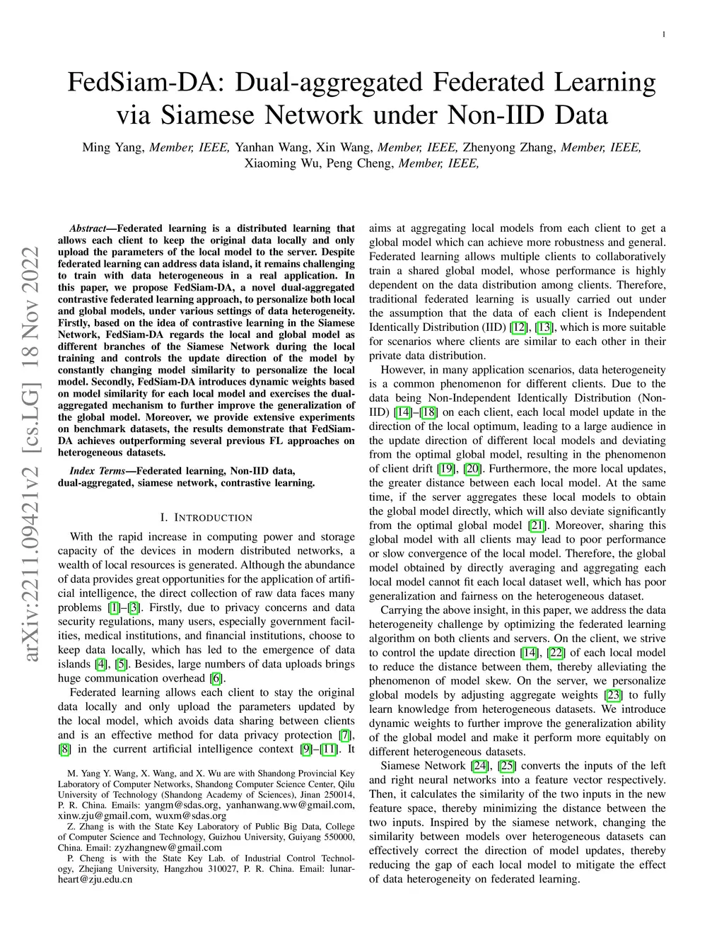 FedSiam-DA: Dual-aggregated Federated Learning via Siamese Network under