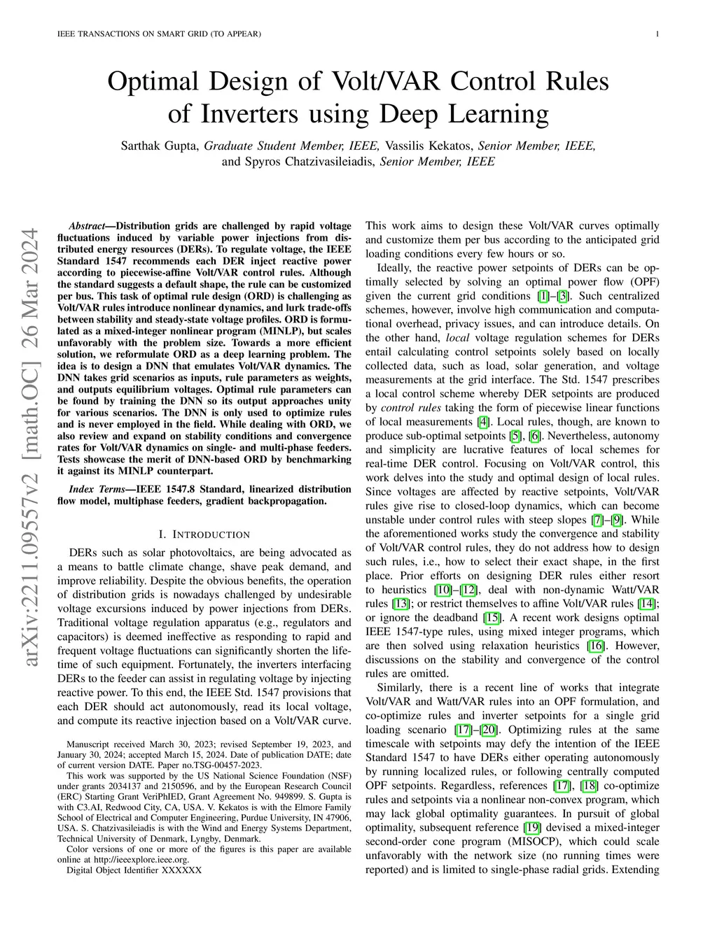 Optimal Design of Volt/VAR Control Rules of Inverters using Deep