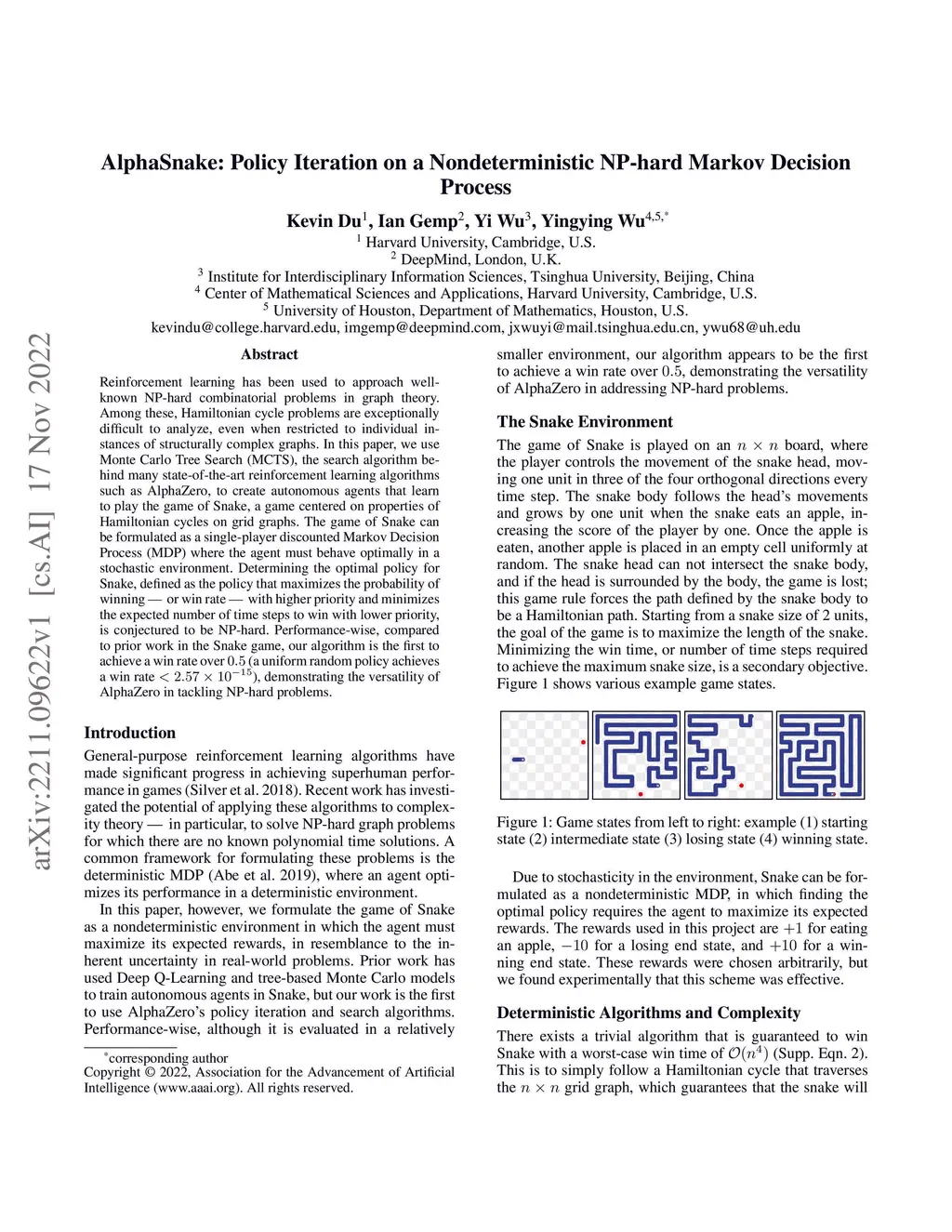 AlphaSnake: Policy Iteration on a Nondeterministic NP-hard Markov