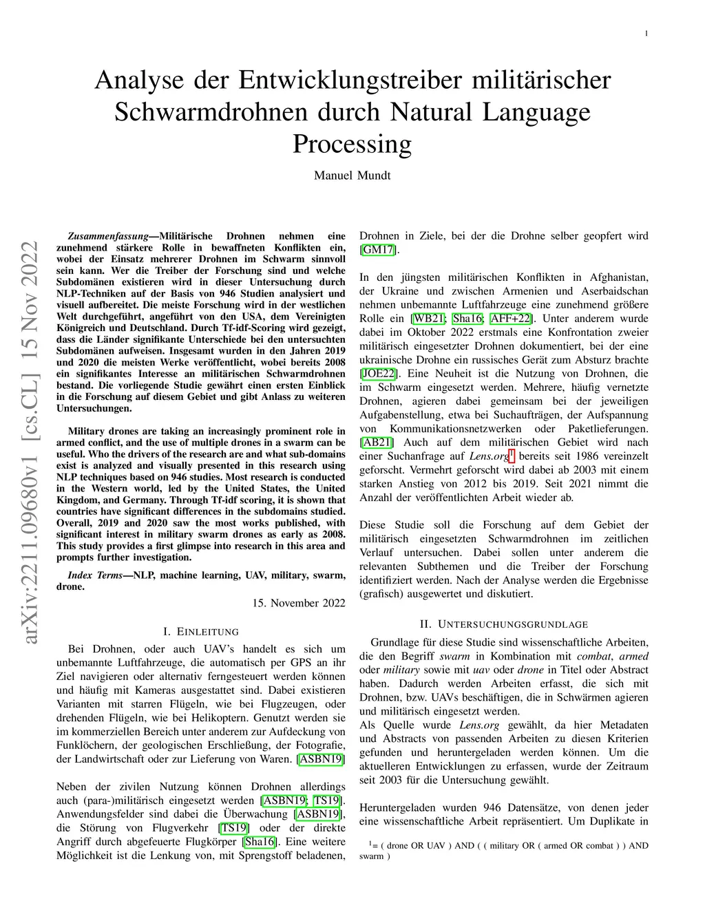 Analyse der Entwicklungstreiber militärischer Schwarmdrohnen durch
