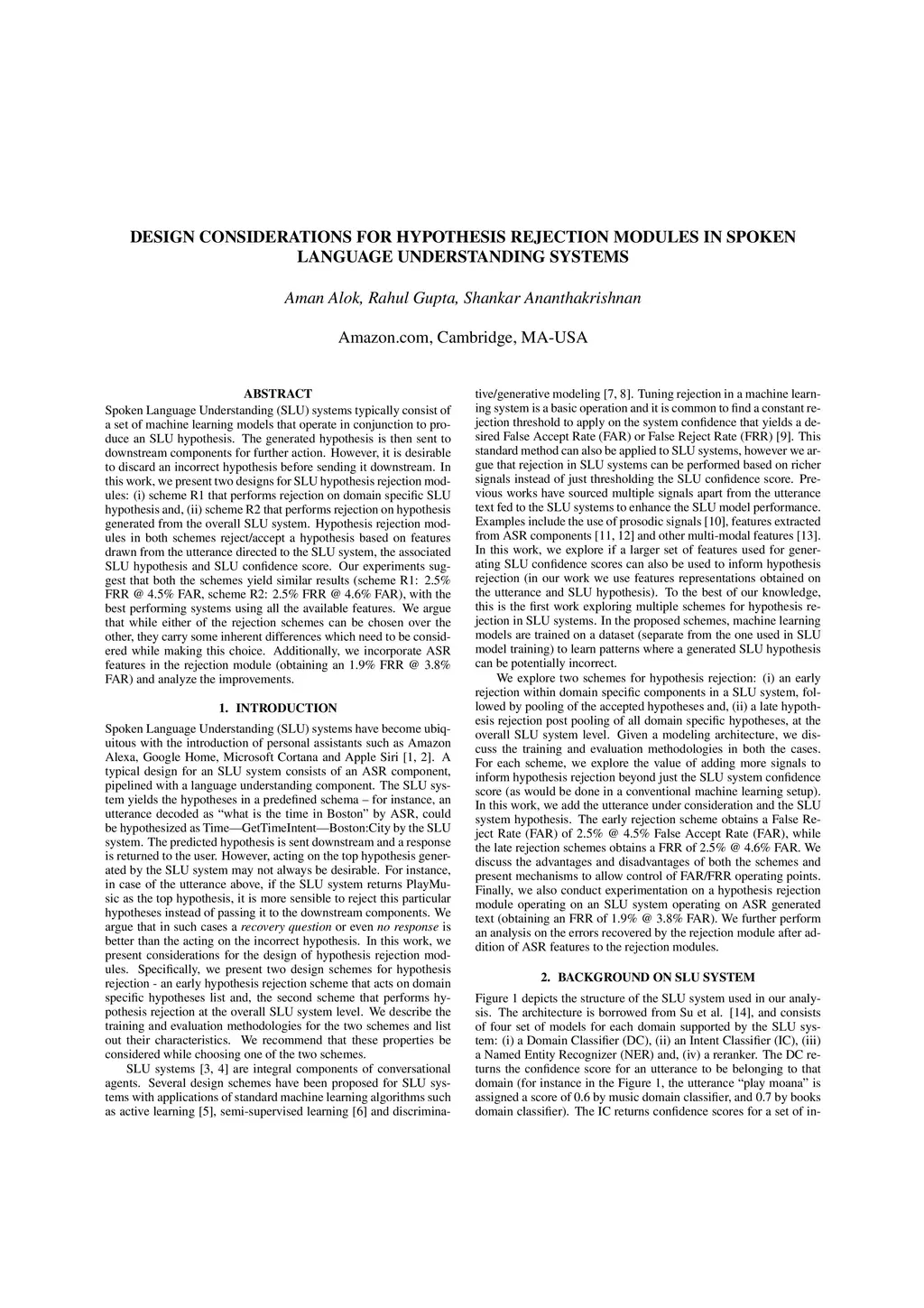 Design Considerations For Hypothesis Rejection Modules In Spoken