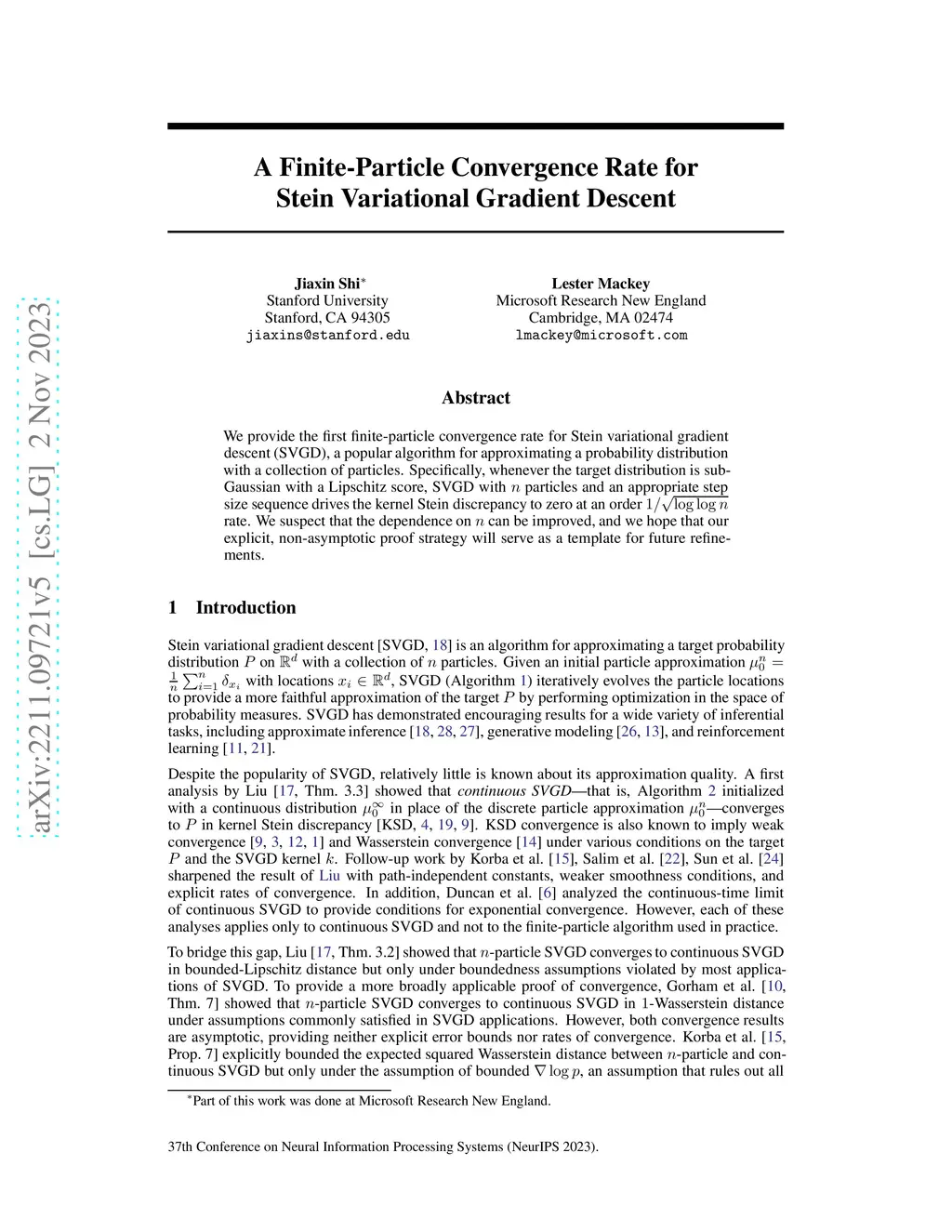 We provide the first finite-particle convergence rate for Stein variational gradient descent (SVGD), a popular algorithm for approximating a probability distribution with a collection of particles. Specifically, whenever the target distribution is sub-Gaussian with a Lipschitz score, SVGD with n particles and an appropriate step size sequence drives the kernel Stein discrepancy to zero at an order 1/sqrt(log log n) rate. We suspect that the dependence on n can be improved, and we hope that our explicit, non-asymptotic proof strategy will serve as a template for future refinements.