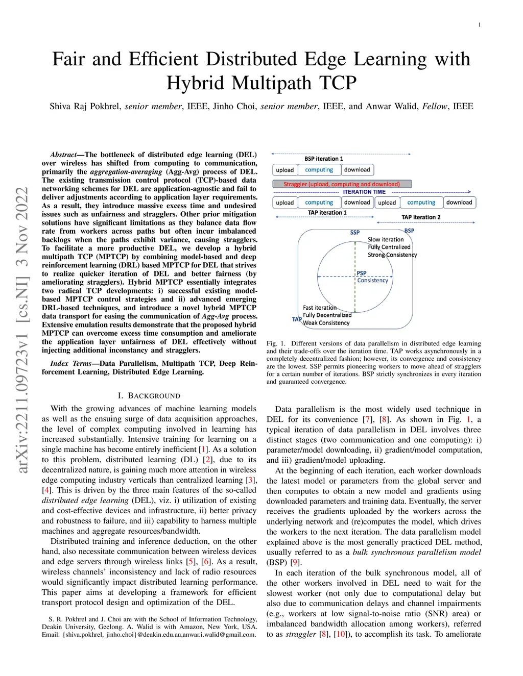 Fair and Efficient Distributed Edge Learning with Hybrid Multipath TCP