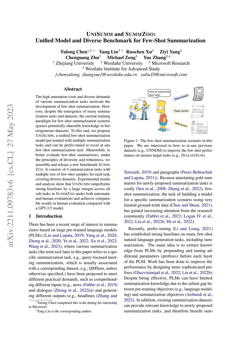 UniSumm and SummZoo: Unified Model and Diverse Benchmark for Few-Shot