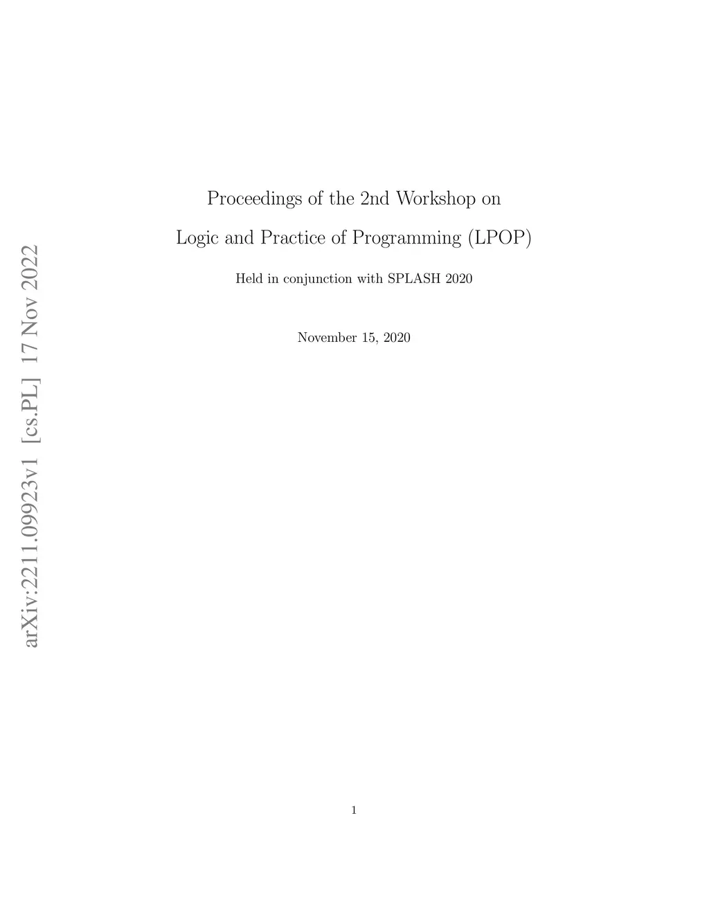 Proceedings of the 2nd Workshop on Logic and Practice of Programming