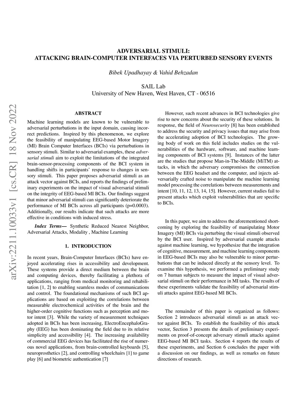 Adversarial Stimuli: Attacking Brain-Computer Interfaces via Perturbed