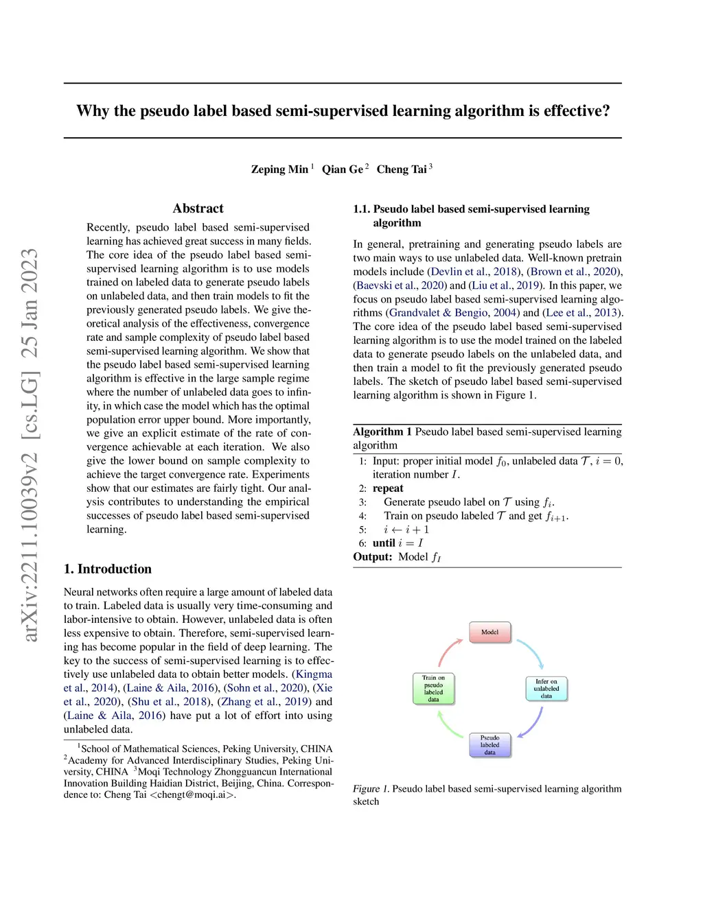 Recently, pseudo label based semi-supervised learning has achieved great success in many fields. The core idea of the pseudo label based semi-supervised learning algorithm is to use the model trained on the labeled data to generate pseudo labels on the unlabeled data, and then train a model to fit the previously generated pseudo labels. We give a theory analysis for why pseudo label based semi-supervised learning is effective in this paper. We mainly compare the generalization error of the model trained under two settings: (1) There are N labeled data. (2) There are N unlabeled data and a suitable initial model. Our analysis shows that, firstly, when the amount of unlabeled data tends to infinity, the pseudo label based semi-supervised learning algorithm can obtain model which have the same generalization error upper bound as model obtained by normally training in the condition of the amount of labeled data tends to infinity. More importantly, we prove that when the amount of unlabeled data is large enough, the generalization error upper bound of the model obtained by pseudo label based semi-supervised learning algorithm can converge to the optimal upper bound with linear convergence rate. We also give the lower bound on sampling complexity to achieve linear convergence rate. Our analysis contributes to understanding the empirical successes of pseudo label-based semi-supervised learning.