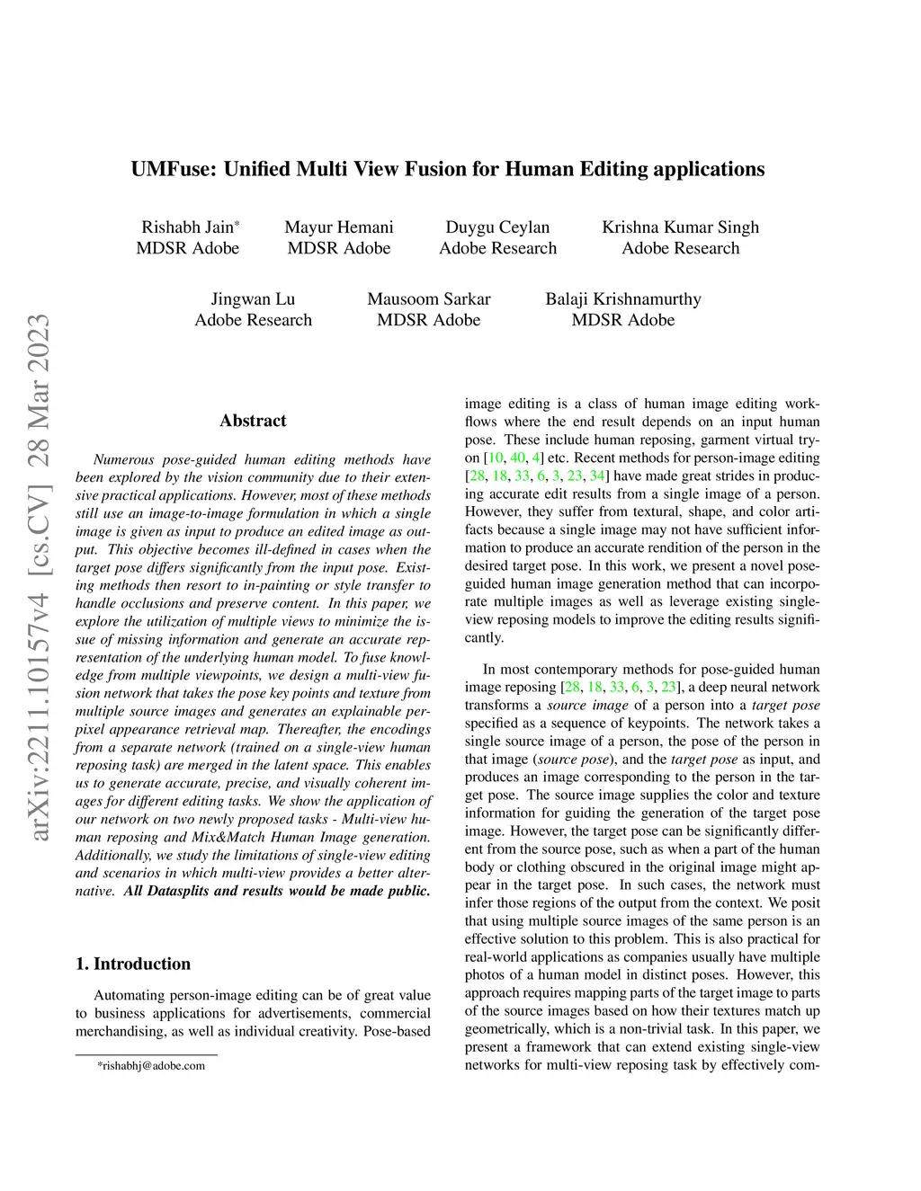 UMFuse: Unified Multi View Fusion for Human Editing applications